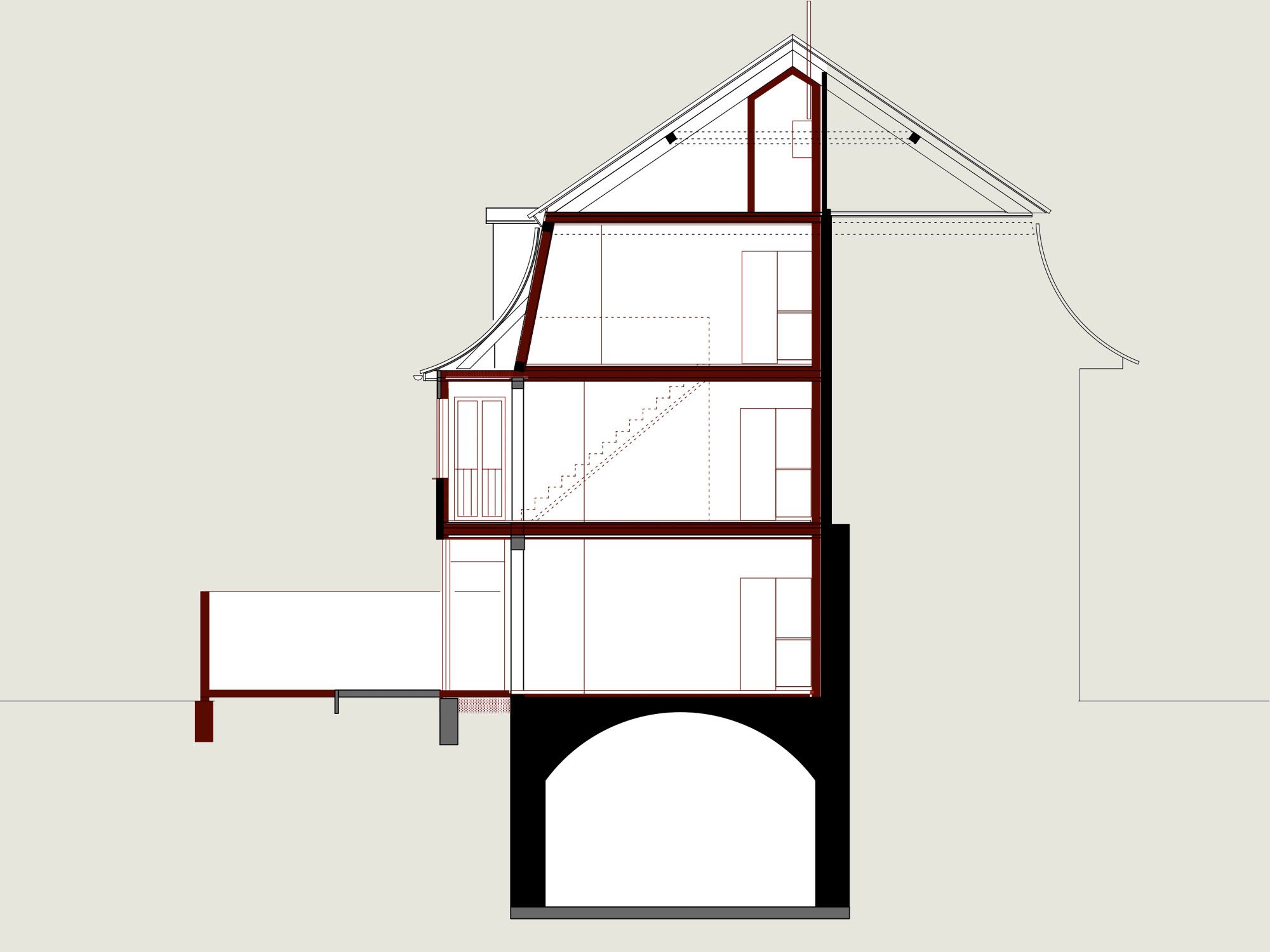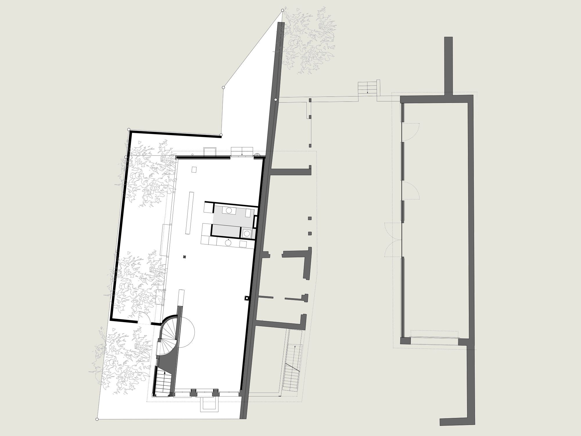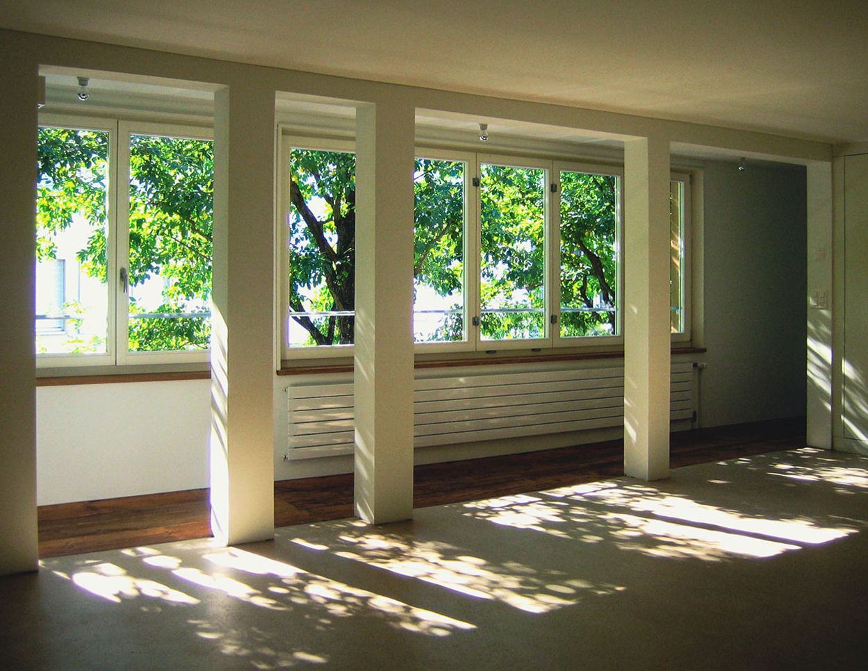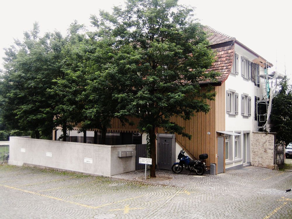 Hinter der historischen Häuserzeile an der Laurenzenvorstadt herrscht eine leicht exotische Idylle. Das vorliegende Projekt wahrt und unterstreicht diese Stimmung. Alt und Neu greifen ineinander. Eine neue Mauer begrenzt einen Gartenhof. Innen- und Aussenraum sind durch eine Glashaut klimatisch getrennt. Das Projekt umfasst drei Eigentumswohnungen mit offenem Grundriss für ein bis zwei Personen. Die Einheiten sind weitgehend identisch in Grundriss und Ausstattung, weisen jedoch entsprechend der Lage innerhalb des Gebäudes eine eigene Charakteristik auf.