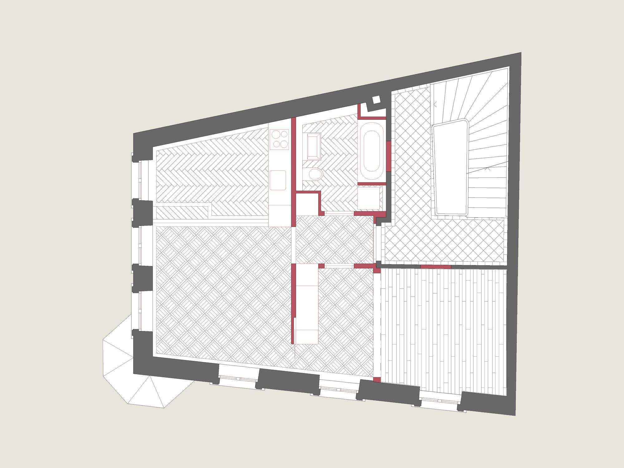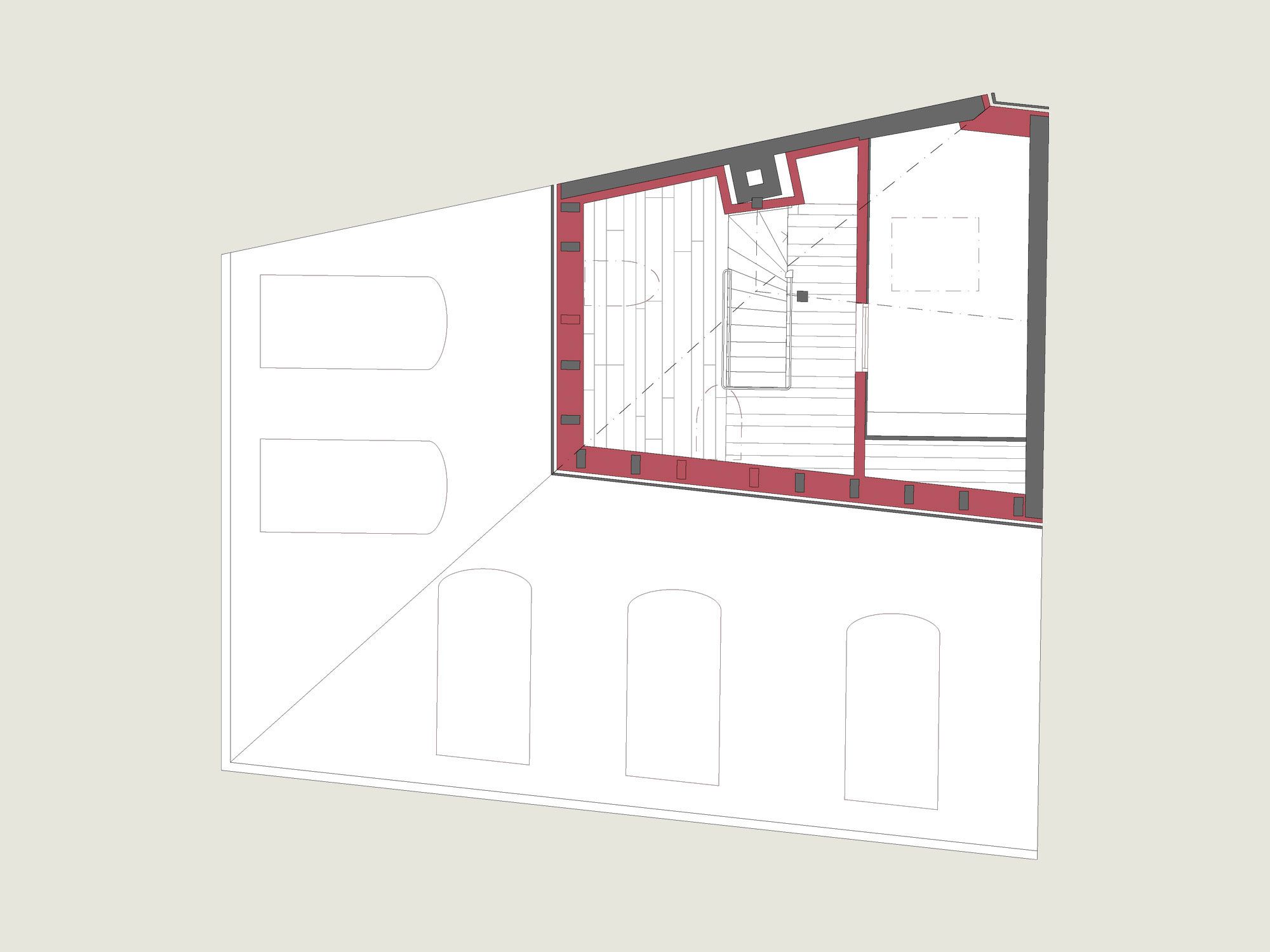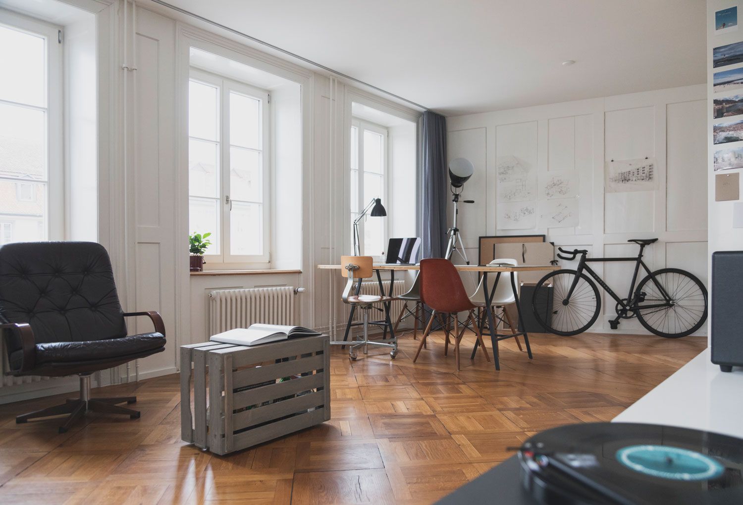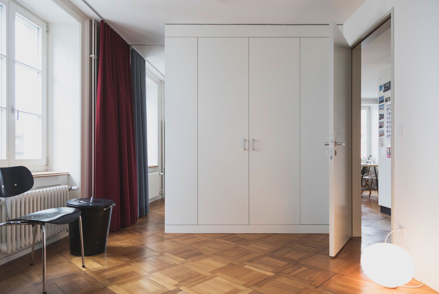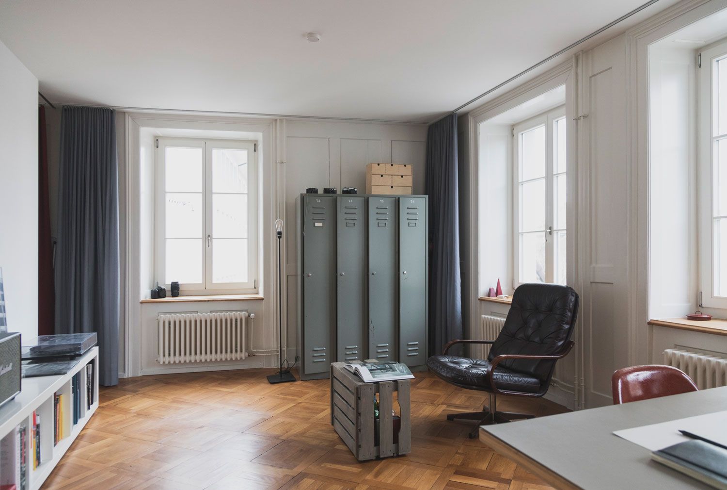 Die Umbauarbeiten des Wohn- und Geschäftshauses sind mit der Absicht erfolgt, eine zeitgemässe räumliche und technische Erneuerung zu erreichen, ohne das Wesen des Gebäudes grundlegend zu verändern. Das gesamte Gebäude mit Dachstuhl und den gut erhaltenen, vielfältigen Bodenbelägen wurde für die Planung genaustens aufgenommen. Das natürlich belichtete Treppenhaus wurde beispielsweise durch Malerarbeiten mit Bierlasur sorgfältig restauriert und erscheint heute wieder in alter Frische. Die Anpassungen an den Grundrissen erfolgte entsprechend mit dem Ziel, die Bodenbeläge auf die neue Situation zu adaptieren. Dies führt zu interessanten Raumabfolgen mit vielen Zitaten aus vergangenen Zeiten.